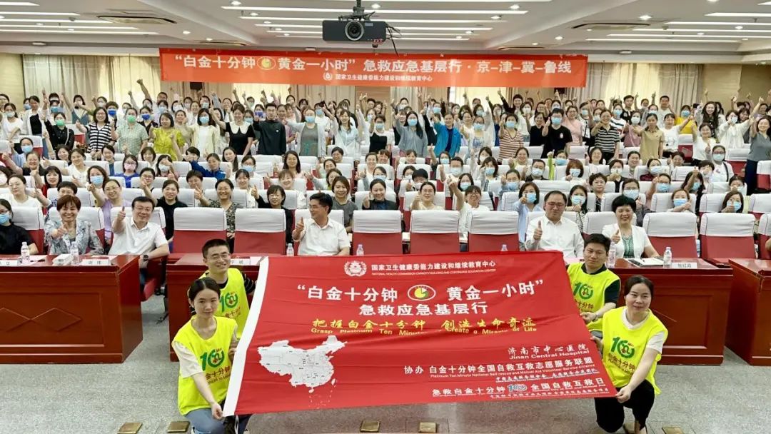 为深入贯彻党的二十大精神,进一步落实“十四五”时期突发事件紧急医学救援工作总体要求,加快构建科学高效、可持续发展的突发事件紧急医学救援体系,促进基层卫生机构应急时效服务与医疗救治水平的提高,进而把适用于大众的时效救治成果,有效输出给周边居民和社区,形成以点带面,辐射性服务群众的普适效果,助力健康乡村建设。2023年6月6日-12日,由国家卫生健康委能力建设和继续教育中心主办的“白金十分钟,黄金一小时”急救应急基层行京-津-冀-鲁线培训活动在北京站启动,途径天津-沧州-济南-泰安-枣庄,在临沂站圆满结束。