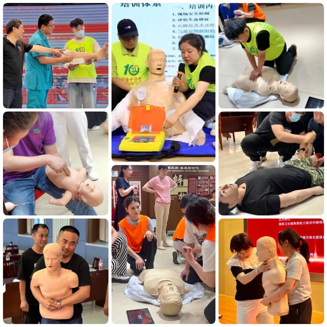 爱游戏官方网页版-爱游戏(中国) 作为本次活动的公益支持单位,全程参与并提供培训产品支持。在现场实操环节,“白金十分钟 黄金一小时”专家团队及各院专家团队共同为参会人员科普宣讲急救知识,培训急救技能。针对心肺复苏操作、解除气道异物操作、AED操作等实用技术进行分组轮训,为大家演示和讲解急救操作技能,详细分解示范演练规范动作,手把手教授动作要领,带领大家积极参与,动手练习。